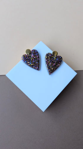 Boucle d'oreille cœur résine violet/ doré/ bleu