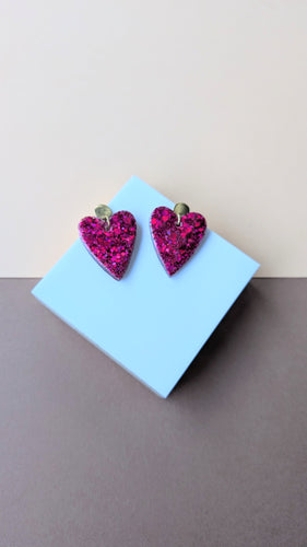 Boucle d'oreille cœur résine fushia