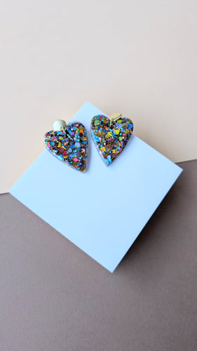 Boucle d'oreille cœur résine automnale bleu/doré/rose