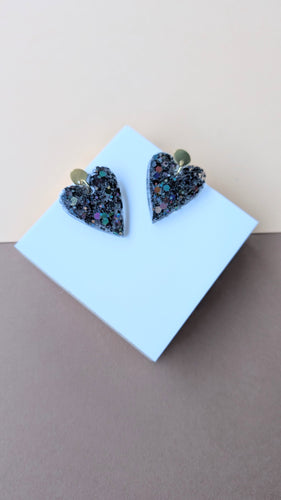 Boucle d'oreille cœur résine noire