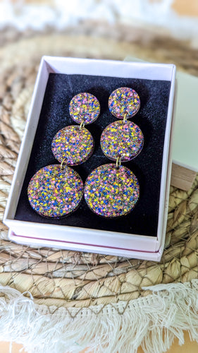 Boucles d'oreilles résine trio ronds rose/bleu/doré