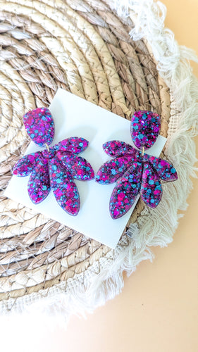 Boucles d'oreilles résine palme turquoise et fushia