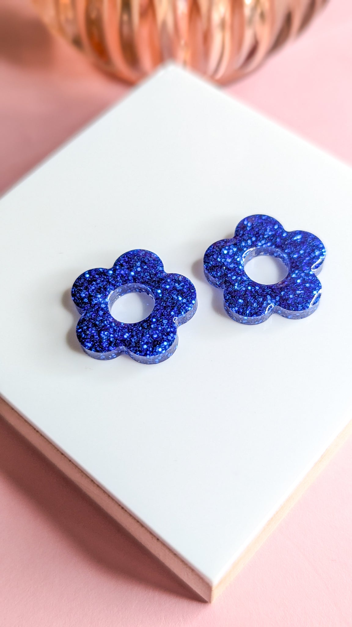 • Charger l'image dans la galerie, Pampilles résine époxy bleu électrique | fleur grand format