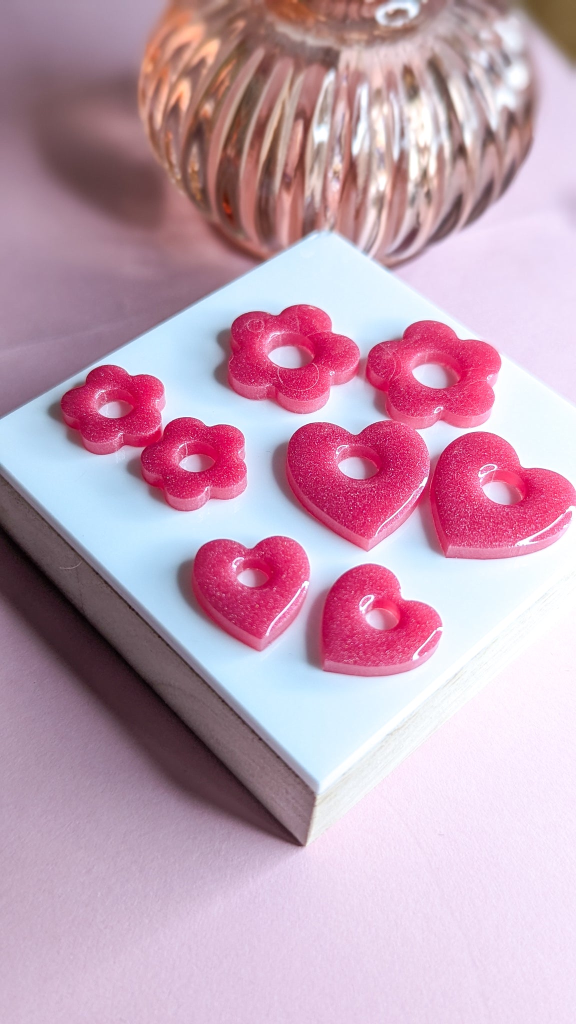 ✔ Dimensions : grande fleur 2cm, grand coeur 2cm, petite fleur 1.5 cm, petit coeur 1.5 cm