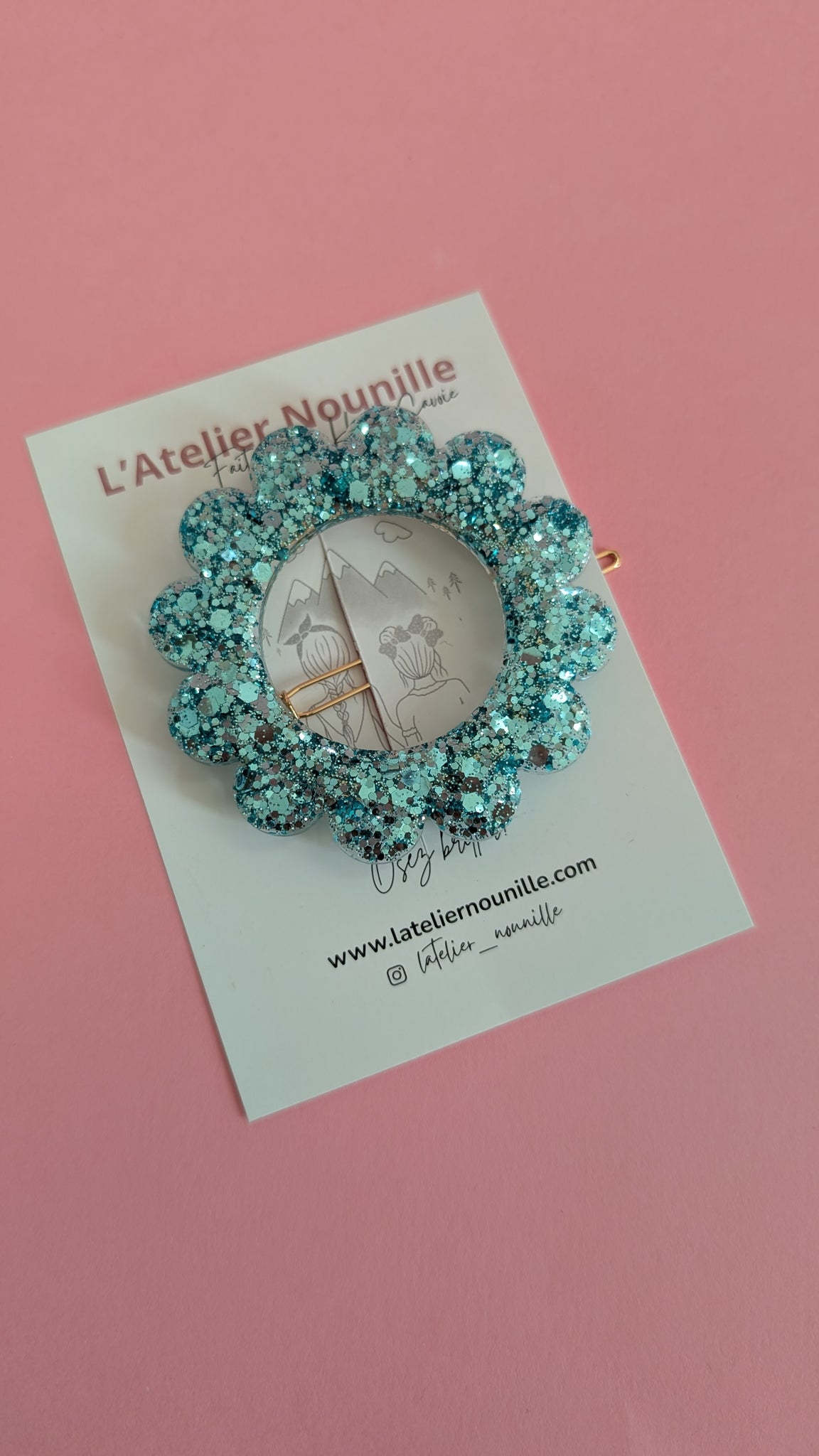 • Charger l'image dans la galerie, Barrette ronde demi-queue turquoise polaire
