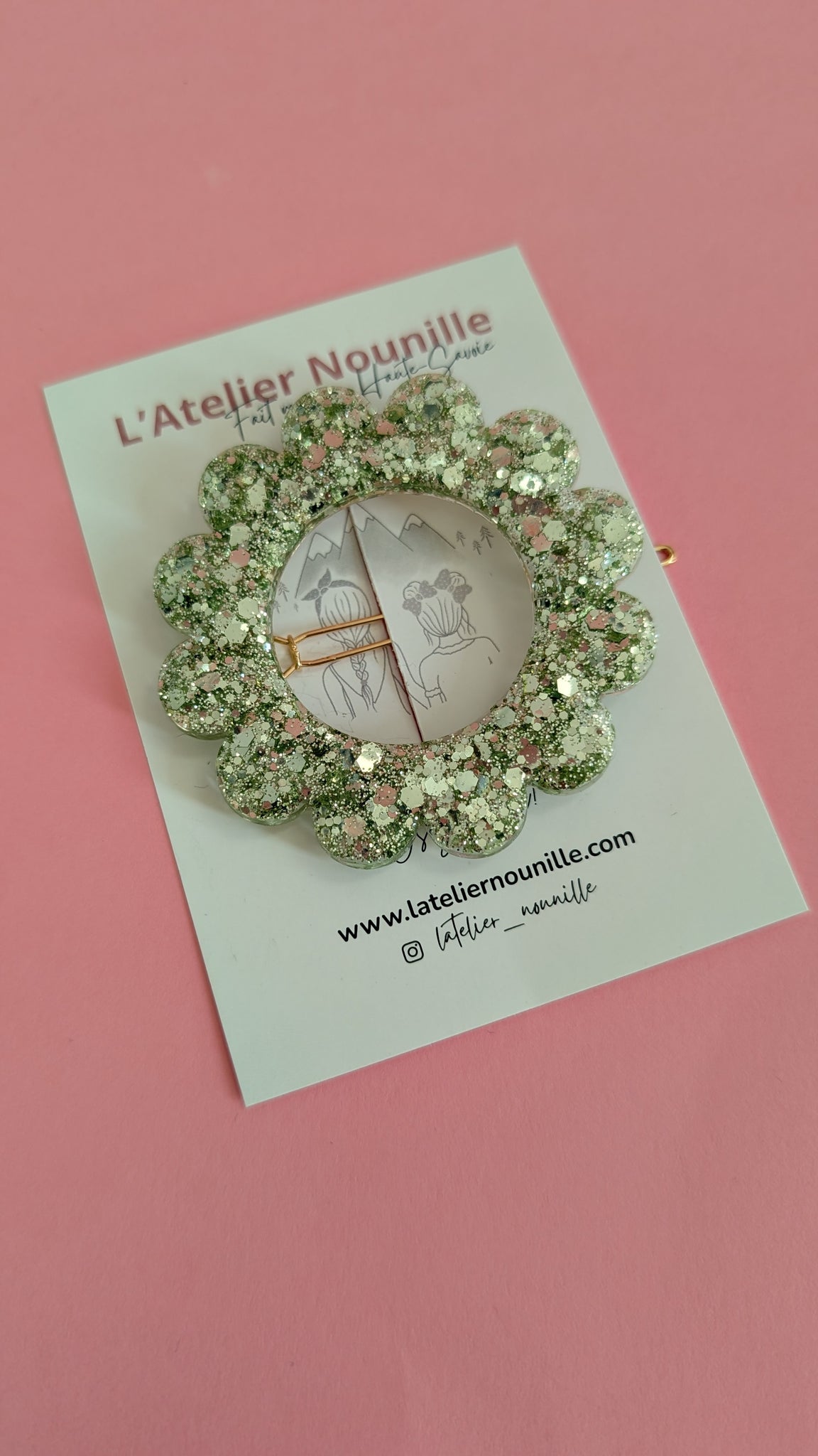 • Charger l'image dans la galerie, Barrette ronde demi-queue vert polaire